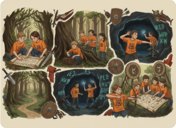 Erdőben zajló térképes kincskeresés